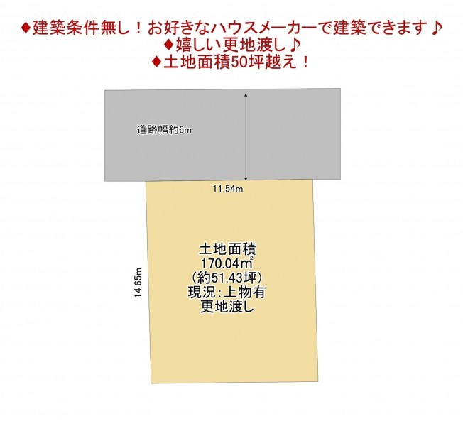 - 北東側 公道6m 間口約11.6m