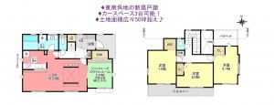 - システムキッチン、カウンターキッチン、食器洗浄乾燥機、浴室乾燥機、複層ガラス、ウォークインクローゼット、モニタ付インターホン、駐車場2台分、駐車場3台分、床下収納、トイレ2箇所