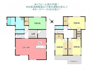 - システムキッチン、カウンターキッチン、駐車場2台分、駐車場3台分、床下収納、トイレ2箇所