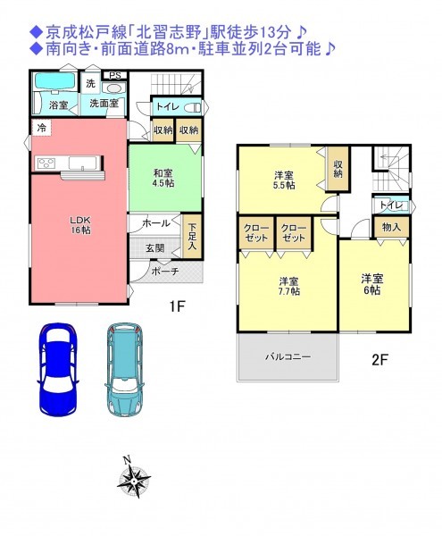 ◆南向き・前面道路8m・駐車並列2台可能♪