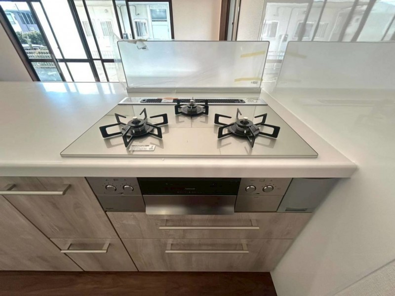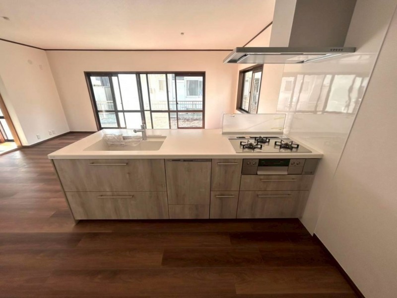 - システムキッチン、カウンターキッチン、シャンプードレッサー、追い焚き、複層ガラス、モニタ付インターホン、駐車場2台分、床下収納、トイレ2箇所