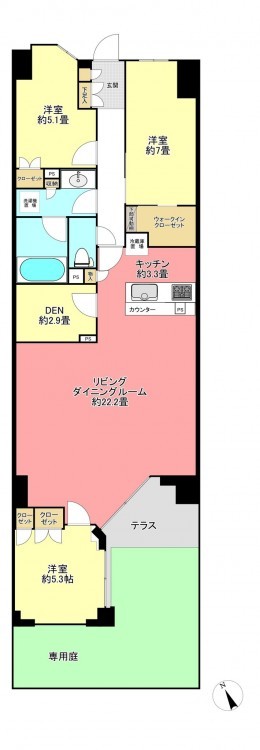 〇テラスから降り注ぐ22.2畳の広々LDK!