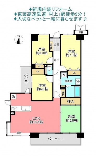 ♦東葉高速鉄道「村上」駅徒歩9分!