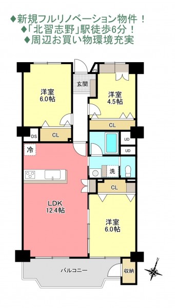 ・コンロ・洗面化粧台・トイレ・洗濯パン・建具・クロス・フローリング