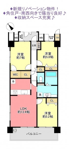 - システムキッチン、カウンターキッチン、食器洗浄乾燥機、洗浄便座、追い焚き、ウォークインクローゼット、モニタ付インターホン、オートロック、ペット可、角部屋、エレベーター